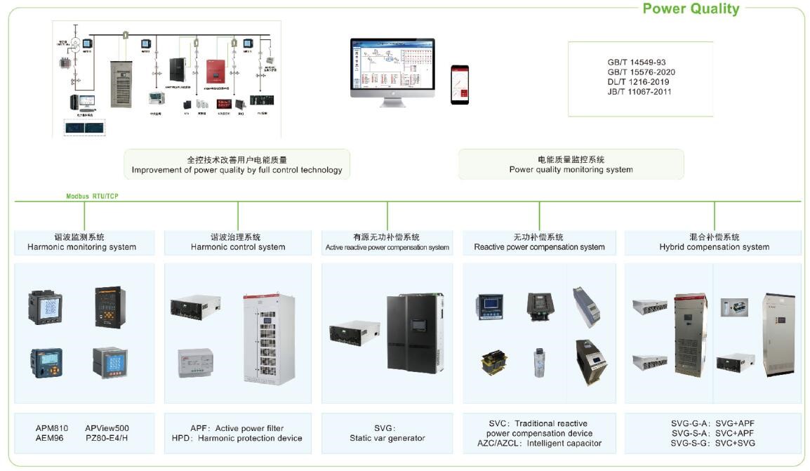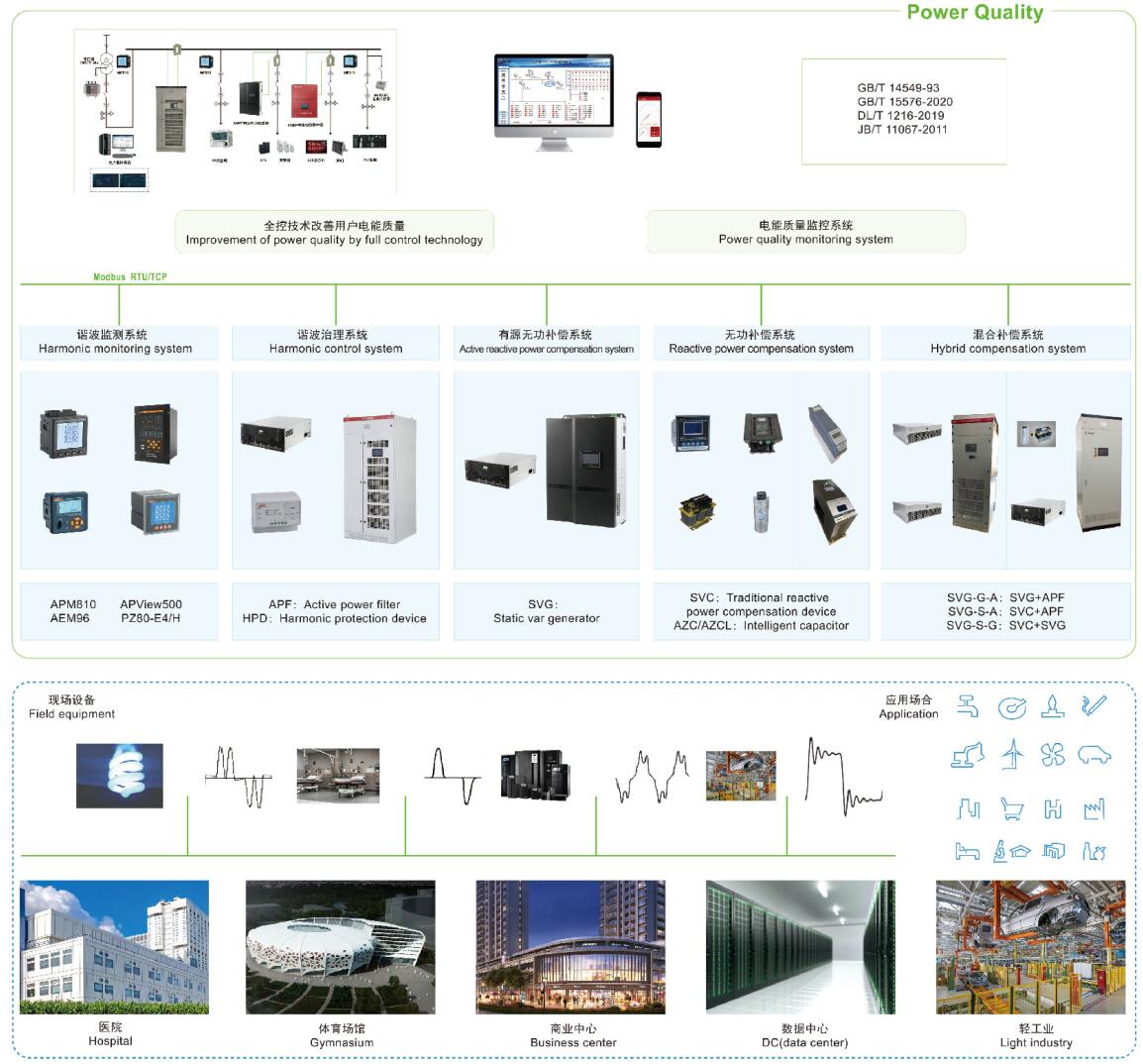 電能質量分析與治理系統主要是研究**供配電系統中的無功補償和諧波治理問題,主要的產品有有源電力濾波器、低壓無功功率補償裝置、靜止無功發生器、混合動態濾波補償裝置、混合動態消諧補償裝置、智慧型動態無功補償裝置、諧波保護器等,適用于新建、改建、擴建和技改項目中工業與民用及公共建筑內電氣設備的無功補償、諧波抑制及綜合治理等,可根據不同行業類型和負載類型的電能質量問題提供合適的設計解決方案,以達到改善供電質量和確保電力系統安全經濟運行的目的。