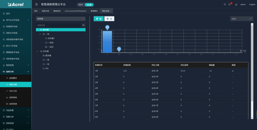 能耗分析功能包括了能耗概況、能耗同比、能耗環(huán)比、能耗報(bào)表和能耗預(yù)測(cè)等五個(gè)模塊。可以查看登錄用戶下的所有項(xiàng)目 的能耗統(tǒng)計(jì)、同環(huán)比和報(bào)表,且按日、周、月等維度進(jìn)行能耗預(yù)測(cè)分析。