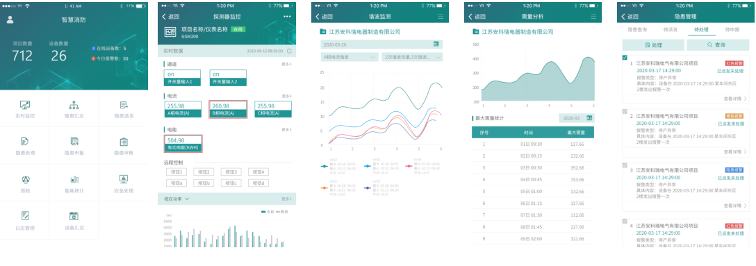 APP支持Android、iOS操作系統(tǒng),方便用戶查看電氣火災(zāi)、防排煙、消防水、消防設(shè)備電源、防火門(mén)、消防設(shè)備管理、視頻 監(jiān)控、火災(zāi)報(bào)警等子系統(tǒng)的實(shí)時(shí)監(jiān)控?cái)?shù)據(jù)、報(bào)警信息、能耗統(tǒng)計(jì)等。