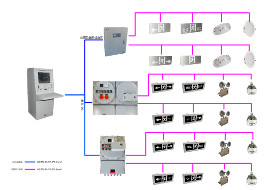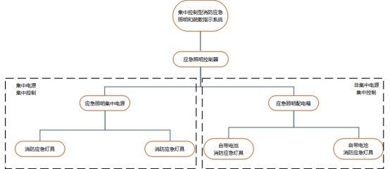 消防應急照明與疏散指示系統由控制器(主機)、集中電源/配電箱和燈具(疏散指示燈具、應急照明燈具)等幾部分組成。