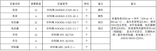 變壓器容量為2000KVA,負荷率為0.8左右,預估電容柜裝機容量為兩套300Kvar,根據現場環境預估為3、5、7次諧波為主,諧波主要影響電容正常工作,容易發熱、鼓包等,需配套14%電抗率的電抗器使用,電抗器主要功能為控制諧波進入電容器,從而保護電容,增加電容器使用壽命。根據柜子尺寸及設備尺寸確定電容配置方案為每個柜子安裝40Kvar*6路和30Kvar*2路。