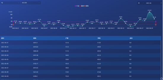 單耗分析:和企業ERP系統對接獲取產量,提供單位產品能耗分析,計算單位產品標煤消耗量或者萬元產值標煤消耗量,單耗可以按照車間、產線等不同對象來計算統計。