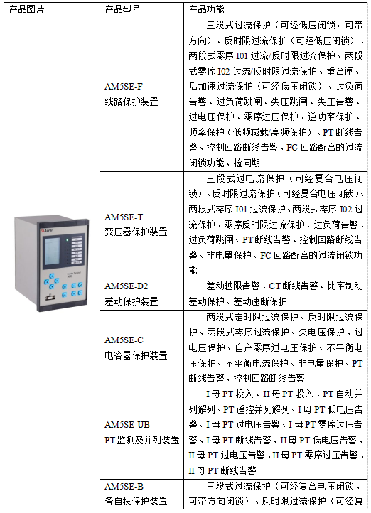 本次針對越南富士康22/10kV能源站機電配電工程中不同對象配置不同微機保護裝置,進線柜配置AM5SE-F線路保護裝置,PT柜配置AM5SE-UB PT監測及并列保護裝置,容量較大的變壓器柜配置AM5SE-T(變壓器保護裝置)+AM5SE-D2(差動保護裝置),其余變壓器柜配置AM5SE-T變壓器保護裝置,母聯柜配置AM5SE-B備自投保護裝置,電容出線柜配置AM5SE-C電容器保護裝置,電機出線柜配置AM5SE-M電動機保護裝置,這幾款微機保護裝置主要通過以下保護功能實現對高壓柜的設備運行情況實時監視和保護: