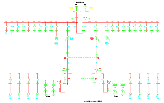 本工程配電工程共有兩棟能源站,包括2個22kV開閉所,2個10kV變配電室,開閉所和高壓配電室均兩段母線,均采用單母線系統,包括90面高壓開關柜,整個配電室共設86臺保護裝置,以其中幾個部分的系統為例,上圖方案如下:
