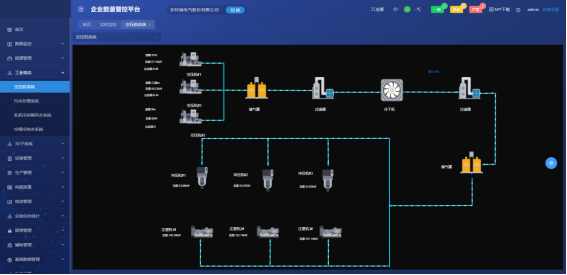 監測空壓機系統的用能,設備啟停狀態,運行時長,頻率,出氣量,比功率等數據。