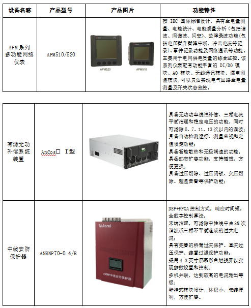 核磁共振器MRI、CT機、X光機及UPS作為醫療行業中重要的末端設備,運行過程中不可避免的對整個醫療供配電系統中產生諧波污染,電流畸變率一般會達到40%~50%。同時醫院照明普遍采用LED熒光燈、金鹵燈、調光器等,此類照明裝置主要負荷類型為開關電源型,諧波電流以3次諧波電流為主,3次諧波電流作為零序電流,三相矢量角度一致,因此向N線進行疊加,導致N線電流過大。針對以上負載情況,建議在各重要設備的配電箱增加電能質量補償設備進行就地治理,達到終端治理諧波的目的,避免諧波影響到整個配電系統和其他用電設備。