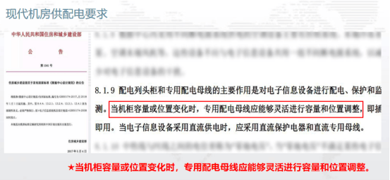 近年來,隨著母線槽在建筑及工廠的配電中越來越廣泛,母線槽場景運用的越多,隨著數據中心建設的快速發展和更高需求,智能母線系統逐漸被應用于機房的末端配電中,具有電流小、插接方便、智能化程度高等特點,即插式插接箱給各個機柜內的PDU分配電。始端箱和插接箱內可設置監測模塊,將數據上傳*動環監控中心。