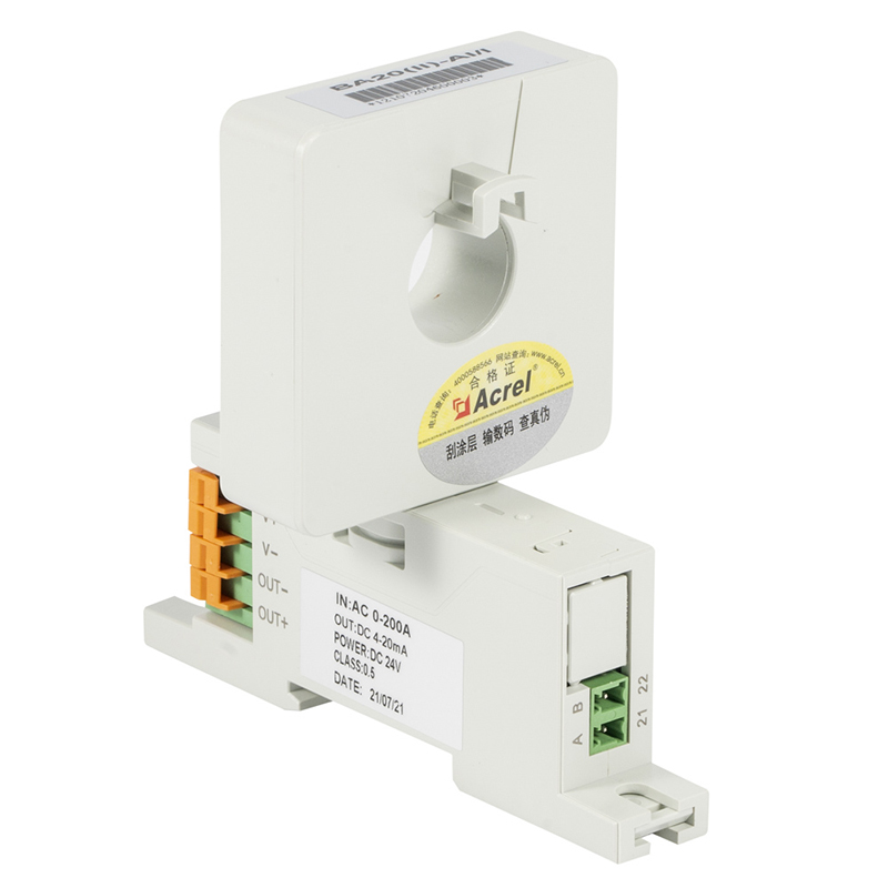 智能型BA系列電流傳感器應用電磁感應原理,對電網中的交流電流進行實時測量,采用恒流和線性補償技術,將其隔離變換為標準的直流信號輸出,或通過RS485 接口(Modbus-RTU 協議)將測量數據進行傳輸。DC24V 或12V 安全電壓供電,可廣泛用 于工業自動化領域。BA50L(Ⅱ)-AI 為交流剩余電流互感器,主要檢測用電系統的漏電流,能隨時掌握電氣線路和設備的情況,防止因漏電而發生的火災等事故。