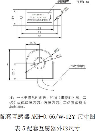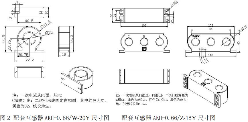 注:建議AKH-0.66W-20Y/Z-15Y/W-12Y的安放位置與一次側互感器的間距保持在1米以上。