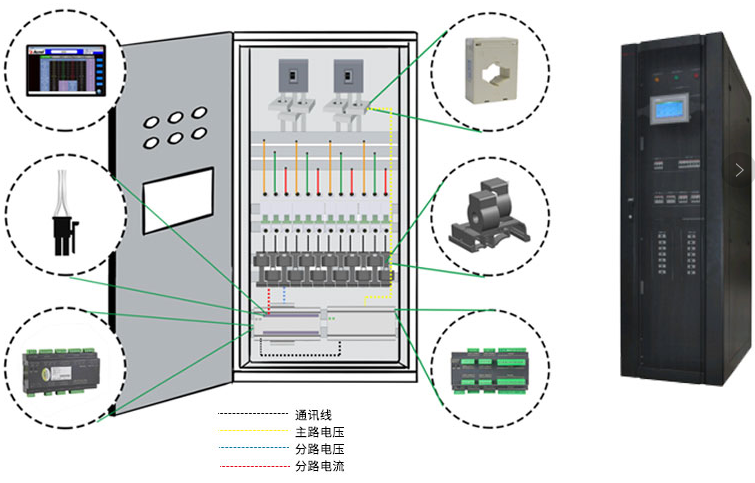AMC16Z系列精密配電監控裝置是專門針對于數據中心服務器電源管理設計的測量裝置。裝置設計小巧,能夠對A+B路進線和96路出線的全電參量參數、輸入輸出開關及防雷器狀態等實時監測,所有測量通道的告警值均可單獨設定,出線越限事件立即觸發系統聲光告警在傳統儀表的體積上實現了監控回路的高度集成。