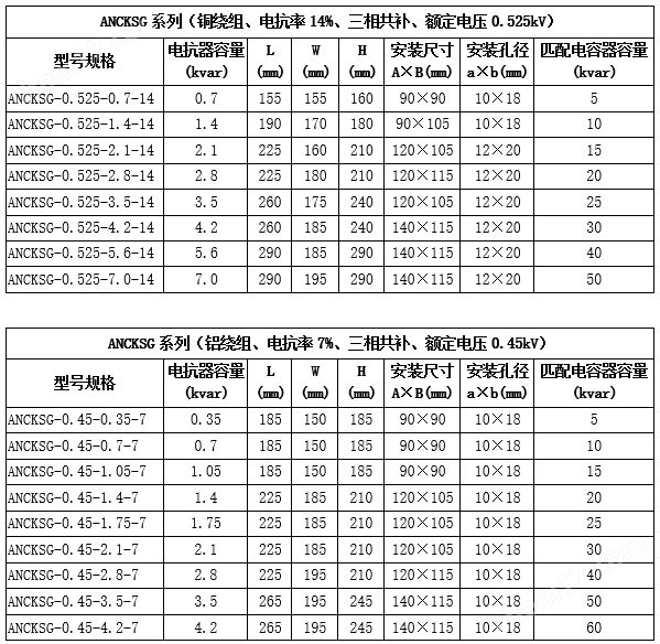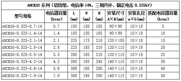 技術要求:適用電容器5kVAR;7%電抗率;銅芯
