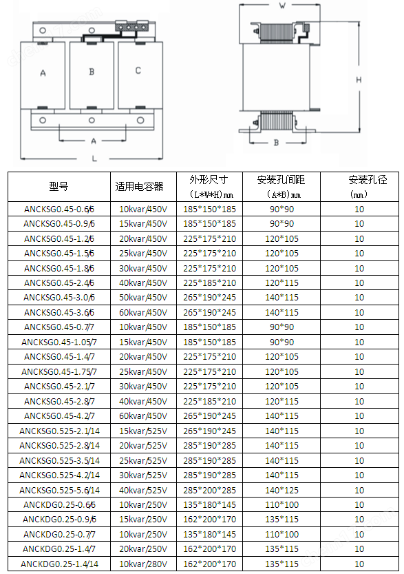 ANCK提高功率因素單相分補 串聯電抗器適用于3、5、7、9次諧波負載的無功補償及濾波。