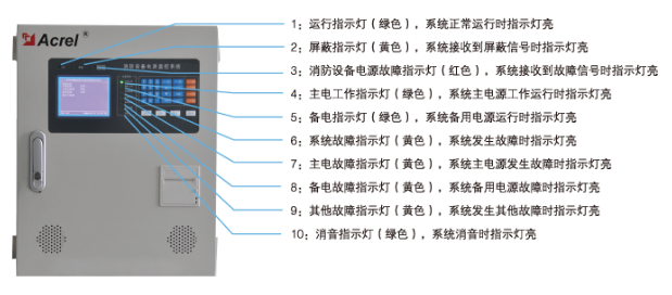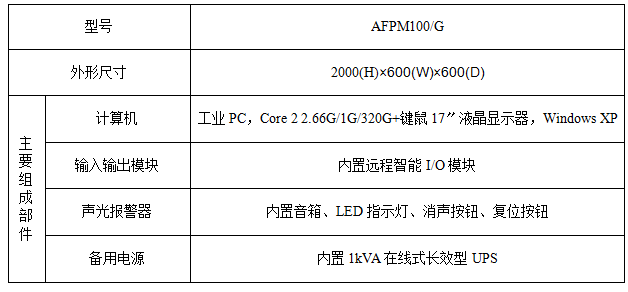AFPM100消防設備電源狀態監控器為壁掛式安裝方式,其主要功能及組成部件如下: