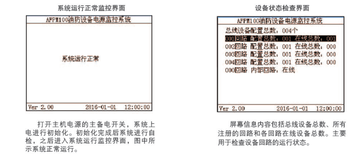 ● 將所有經過調試合格的各項設備按系統設計連接組成完整的消防設備電源監控系統,觀察并記錄所監控電源的實時工作狀態信息;
