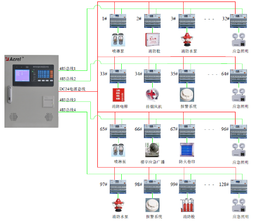 現代建筑內部,消防報警、防火、滅火系統種類繁多,并分布在建筑內的各個角落。當災情發生的時候,消防設備能否處于正常的工作狀態,直接關系到人民生命財產是否得到及時保全。因設備老化、電力中斷造成監控設備與防火設備的工作中斷,延誤了火災的控制,而發生的悲劇屢見不鮮。因此,針對消防設備電源的監測系統便應運而生,對各類消防設備的工作狀態進行有效監控。