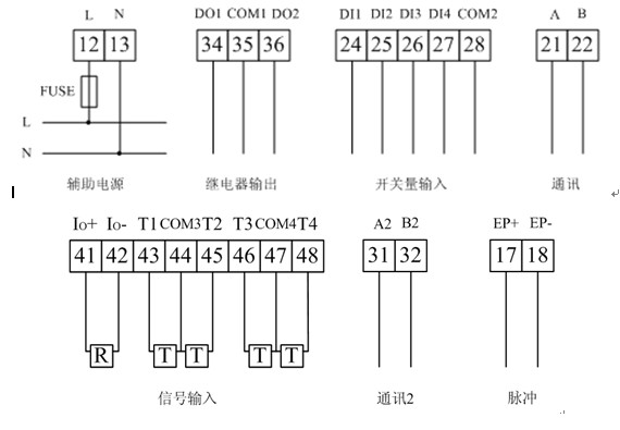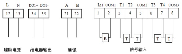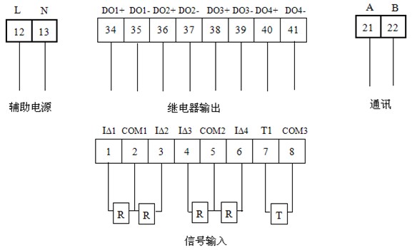 輸入 | 1路剩余電流,4路溫度 | 4路剩余電流,1路溫度 | |