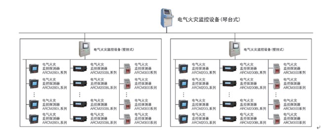 Acrel-6000電氣火災監控系統由Acrel-6000系列監控設備、ARCM系列監控探測器和配套附件組成。系統各設備之間均采用總線(雙絞線)進行連接,施工布線簡單方便。